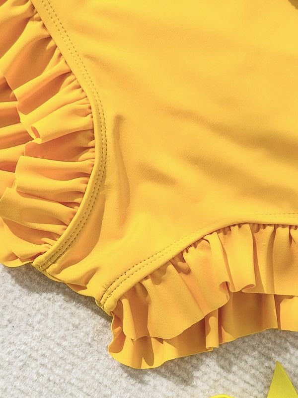 / Kids Baby Girls Casual Vacation Cute Tiny Flower Print Sleeveless Off Shoulder One Piece Swimwear
