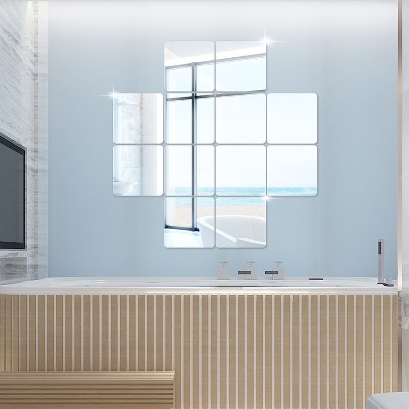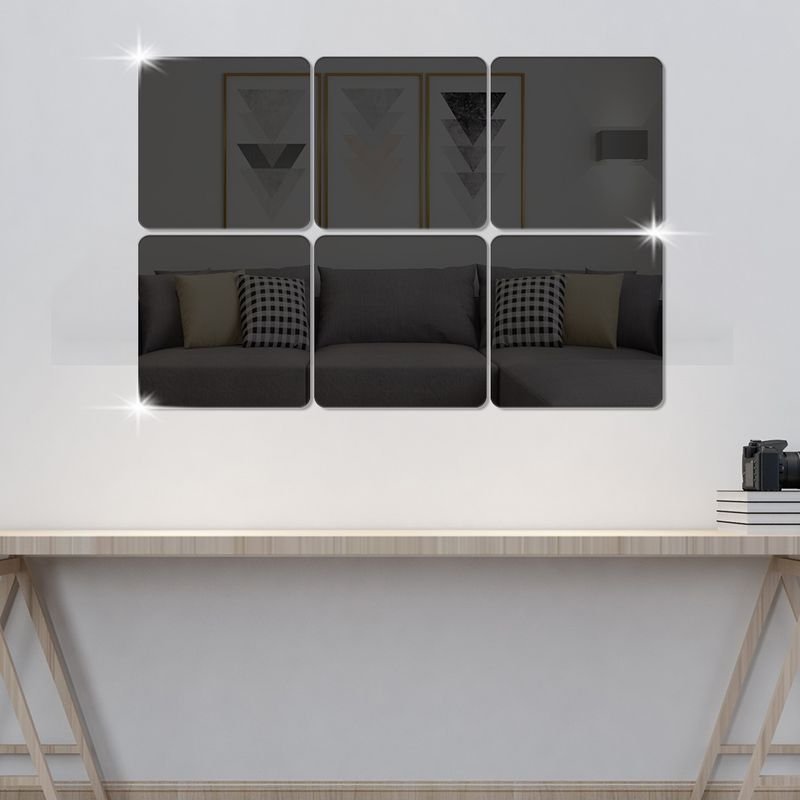/ Simple Creative Thick Acrylic 6 Pieces Square Mirror Wall Sticker Decoration