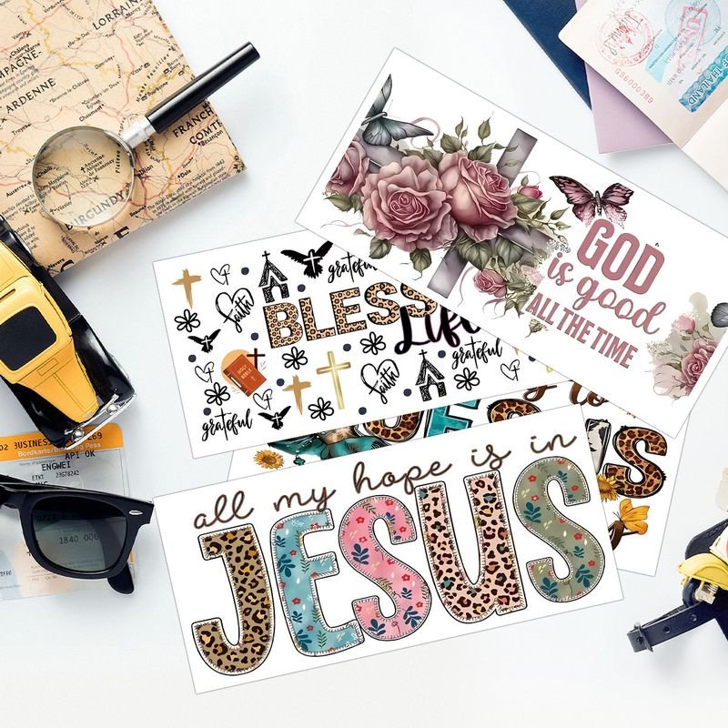 / Simple Fashion Cartoon Letter UV Transfer Glass Cup Crystal Sticker