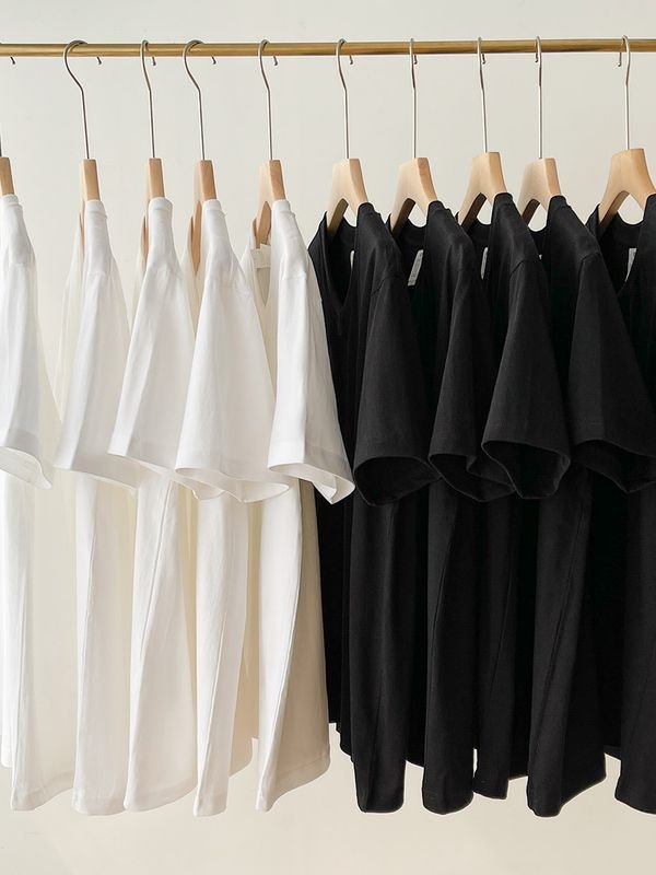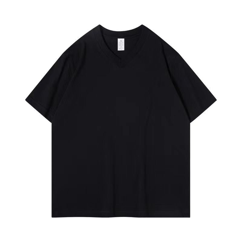 V Neck White 100% Cotton Unisex Women Men Loose Summer Short-Sleeved T-shirt quantity
