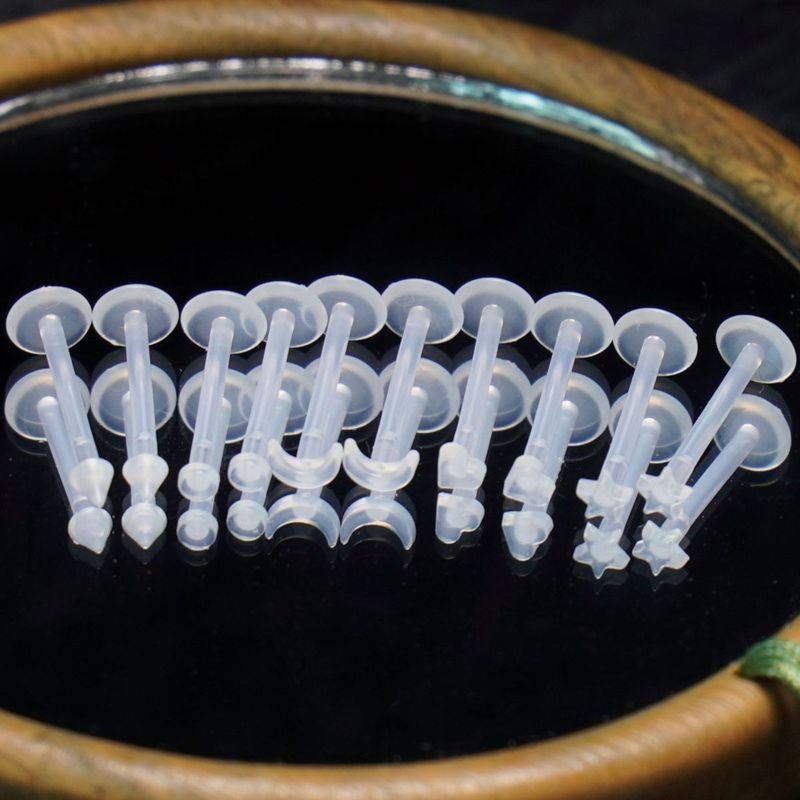 Women Fashion Invisible Acrylic Straight Lip Nail Body Piercing Jewelry 10 Pack